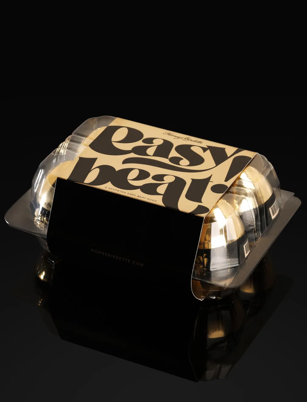 Introducing the Easy Beat Egg 6 pack, an egg-citing treat for him. What is it, you ask? Inside each egg, there’s a silicone sleeve that stretches over the shaft. Designed to feel even better than oral play, the sleeve glides up and down within the palm of your hand. Each type of egg has a different texture and pattern that will create various sensations. Pop and play!