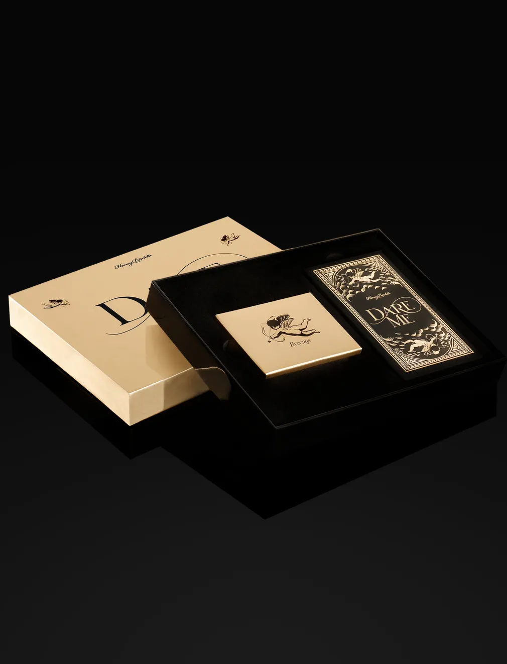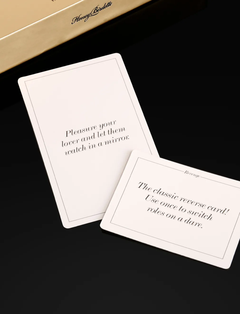 Dim the lights and chill the champagne! This is a new twist on our classic game, with all new cards and racy dares. Taking turns between you and your lover, pick up a ‘Dare Me’ card and do as instructed. For every 3 dares that you complete, pick up a ‘Revenge’ card and play to your advantage!